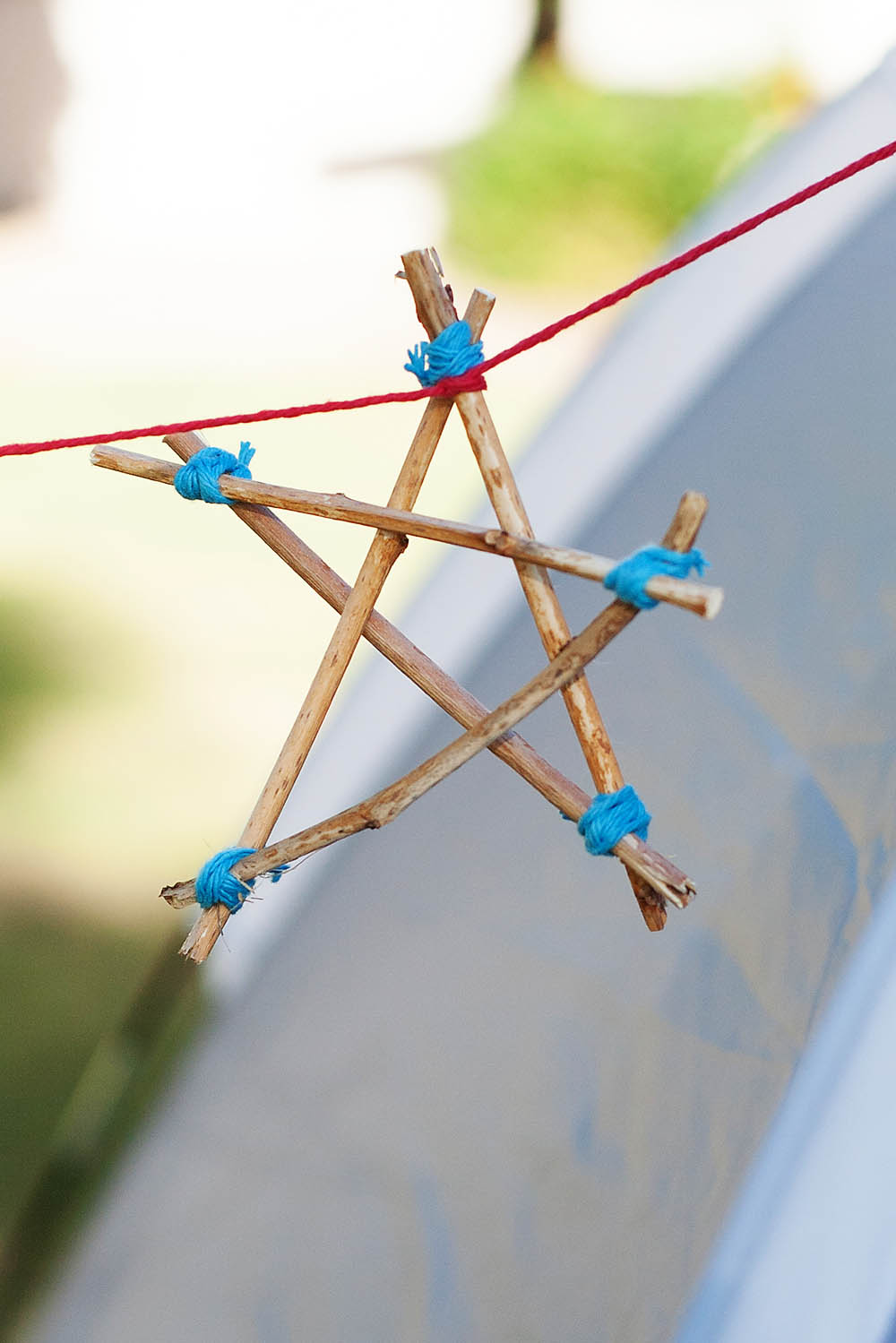 Another way to craft while camping is to create a simple stick banner to spruce up the campsite. You’ll need: