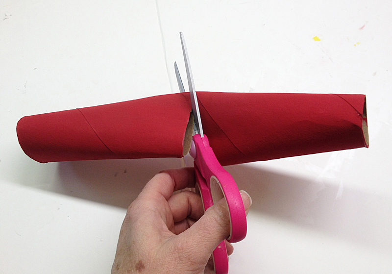 Paint the cardboard tube red and let it dry. Cut the cardboard tube in half.