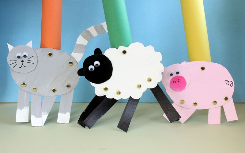TIPS: If you’d like the fasteners to blend in, paint them the same color as the animals after they are assembled. And if you’d like to hide the fasteners better behind the animals, tape down one side in the back.